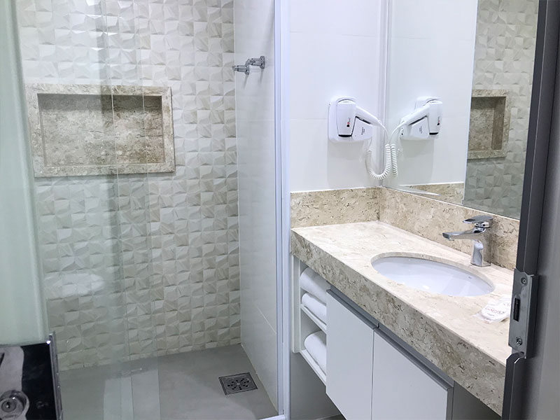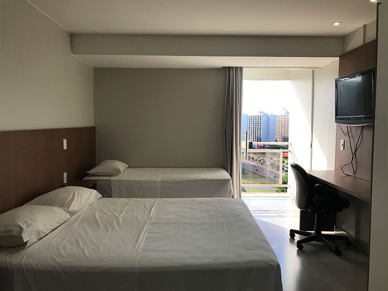 Os apartamentos do ABC Apart Hotel contam com decoração moderna, Tv, Ar-condicionado e Varanda.